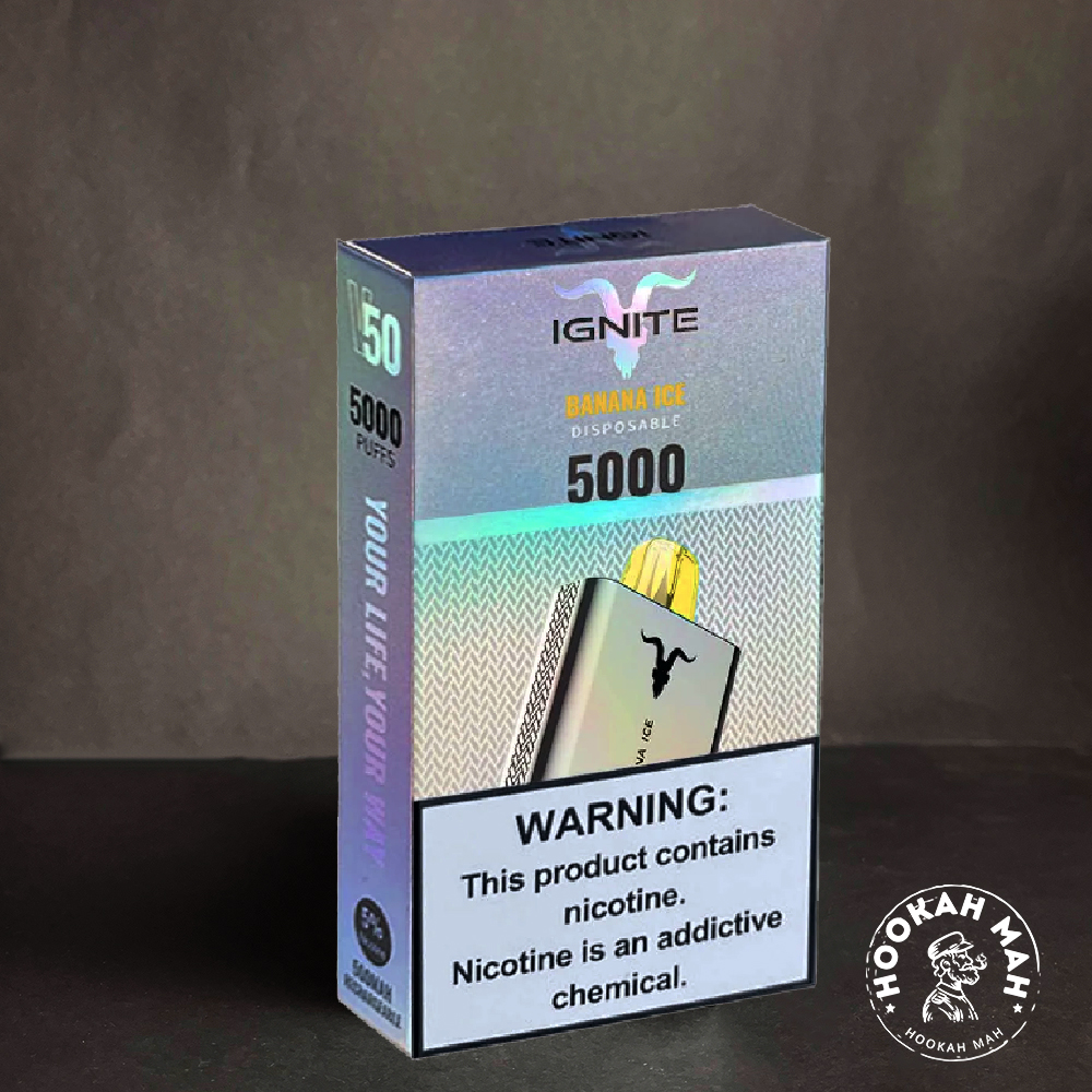 پاد یکبار مصرف IGNITE V50 با 5000 پاف، این دستگاه دارای ظرفیت 12 میلی لیتر و قدرت نیکوتین 5٪ برای یک تجربه لذت بخش بخار است.
